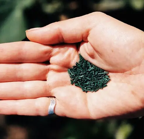 Por la clorofila (verde) y la ficocianina (azul), pigmentos con acción antioxidante y regenerativa únicos de la espirulina.